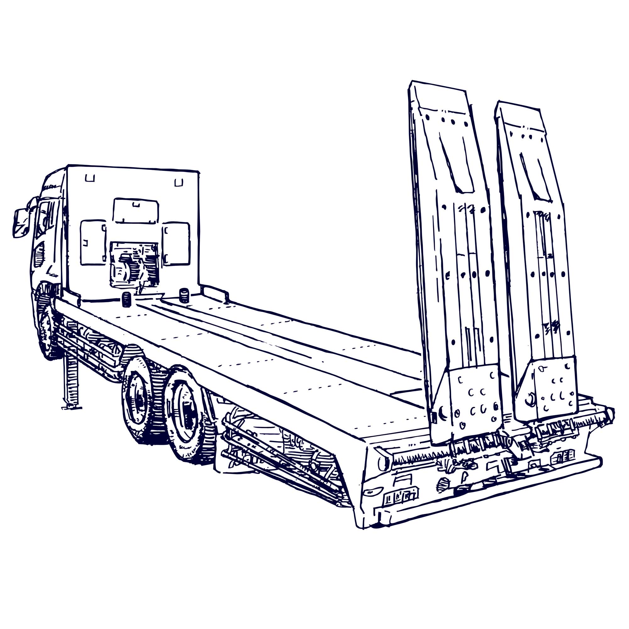 車両傾斜にデッキスライド機構を組み合わせた産業機械運搬車。緩やかな車両傾斜とダイレクトに設置するデッキによりスピーディーでスムーズな荷役作業に高次元で貢献します。デッキ後端をダイレクトに設置させ歩み板を介さない乗り込みも可能。多くの運搬シーンで活躍する産業機械輸送の強い味方です。