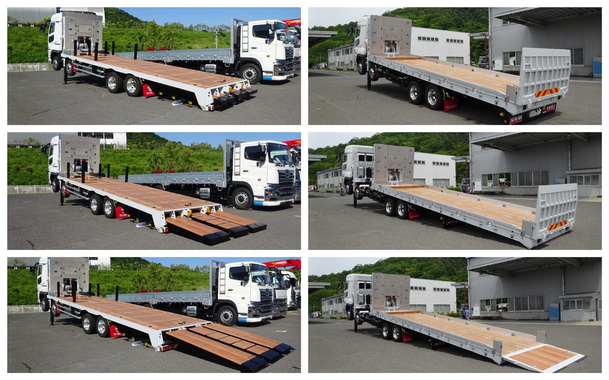 ワイドトレッド型鳥居兼用アウトリガージャッキを装備し、ダンプアップして荷役作業を行うスタンダードな産業機械運搬車です。作業効率を考慮したラジコンユニットを始めとする豊富なオプションをご用意し、シャーシーと固縛したデッキで剛性が高く信頼性と安全性に優れています。